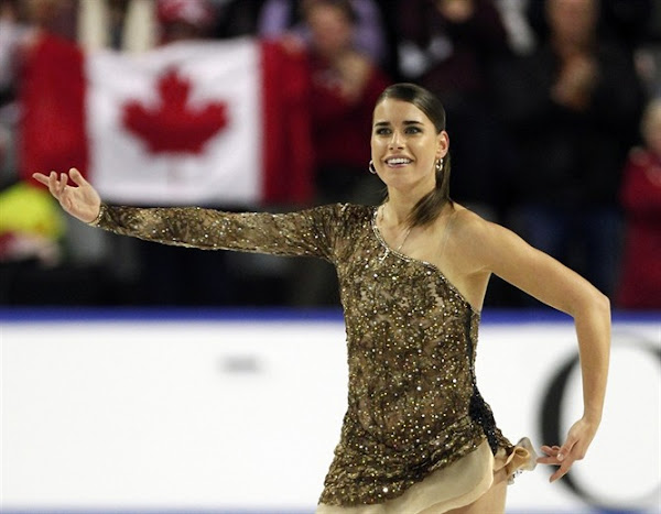 Ole!: Cynthia Phaneuf was at the top of her game during the short program in this one sleeve gold beaded costume. She looked sleek and modern and I loved her hair pulled back into a simple ponytail, very “fashion runway” in fact. Every detail accentuated her Spanish Theme perfectly—and not one Red Rose in sight (take note ladies!).