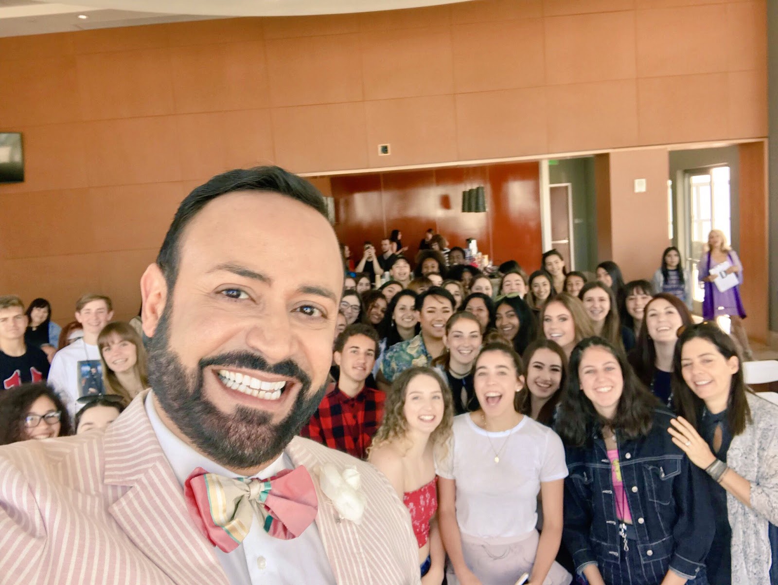 Everyone Smile!--Nick Verreos in a "Group Selfie" with students attending FIDM San Diego "3 Days of Fashion" 2018